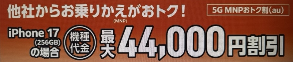 iPhone 17 256GB34,540円割引