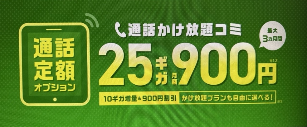 | 15ギガプラン | 15GB→25GB | ※最大3ヵ月間900円割引 |